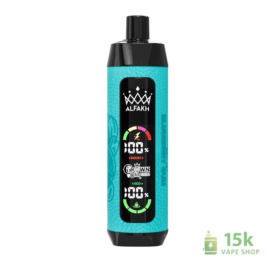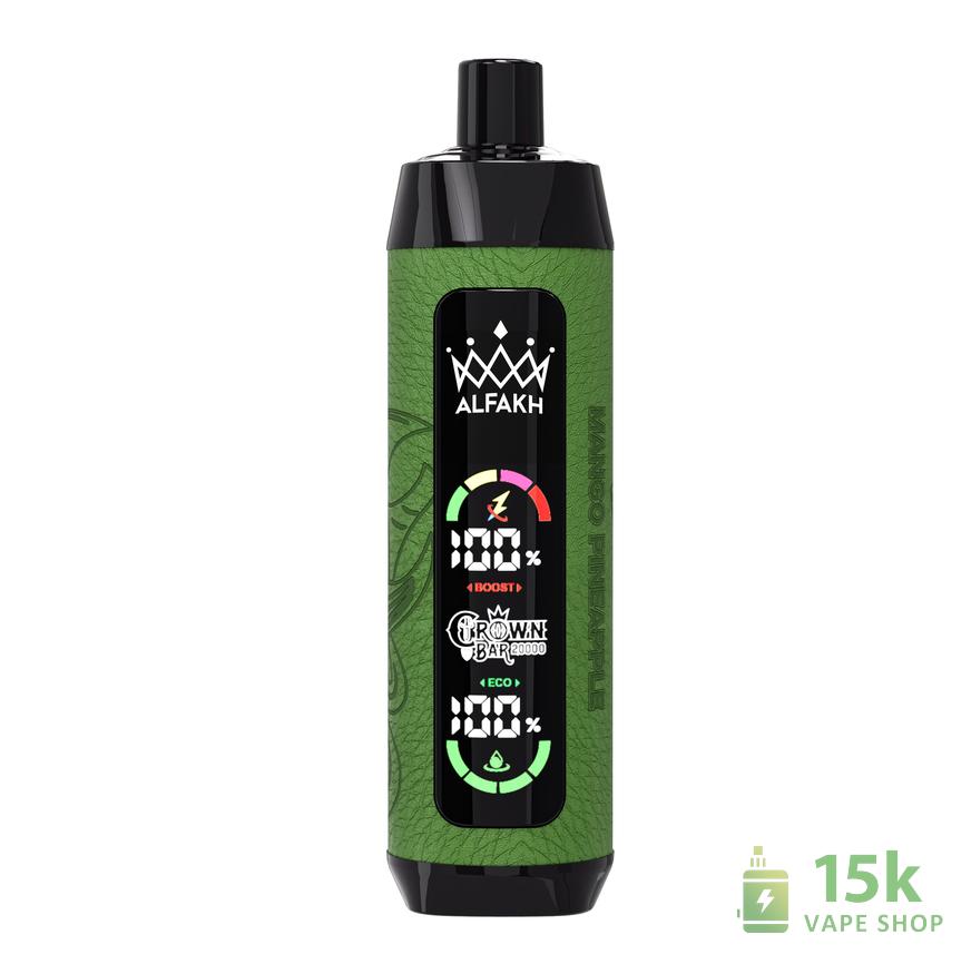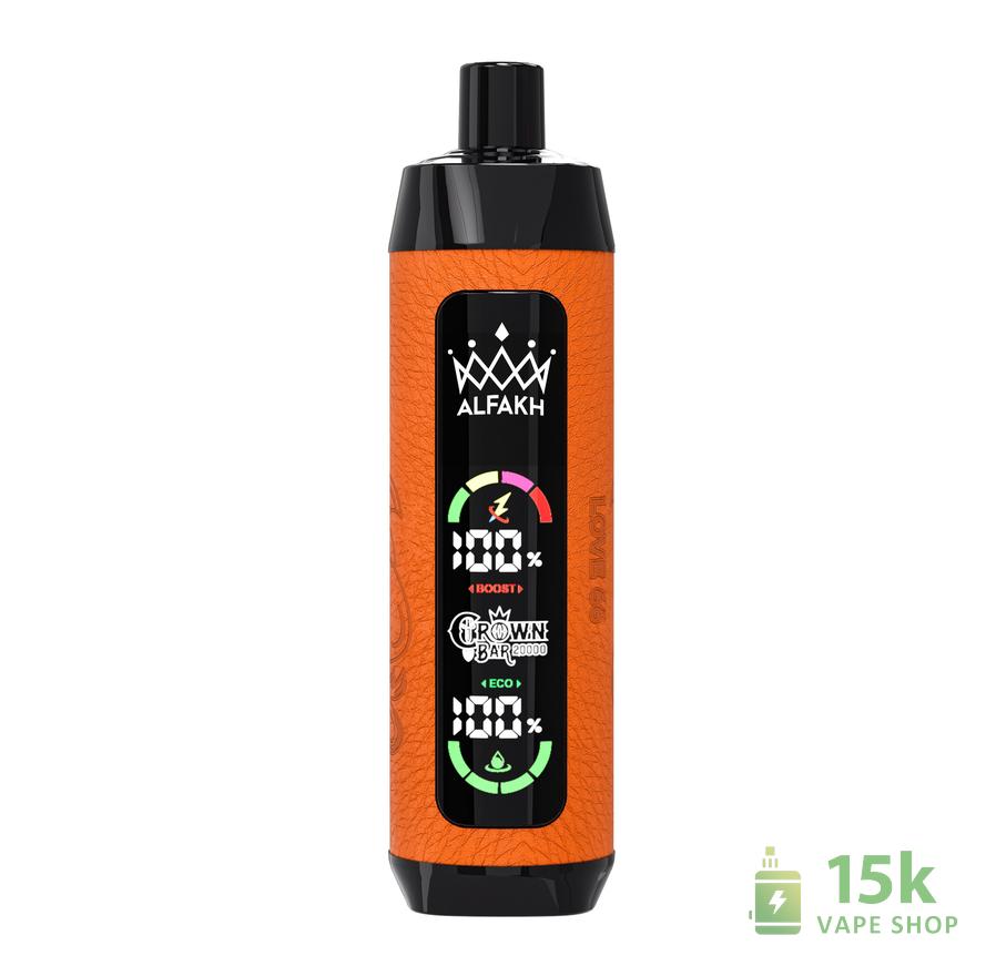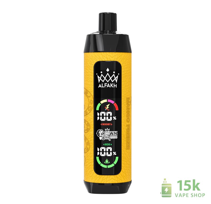 Experience the premium Alfakh Crownbar 20000, a disposable vape with over 20,000 puffs and sleek leather-clad design.