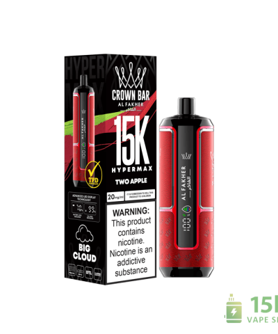 Experience ultimate vaping with the Alfakher Crown Bar 15000 Hyper Max disposable vape. Featuring 22ml pre-filled e-liquid, Type-C charging, and a staggering up to 15,000 puffs powered by advanced mesh coils. Enjoy 20+ vibrant flavors at 5% nicotine strength.