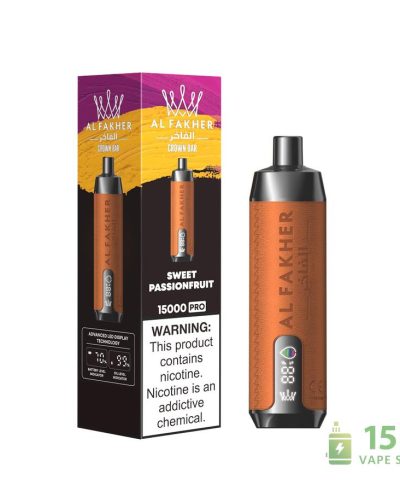 The AlFakher Crown Bar 15000 Pro stands out as a top-tier disposable vape, delivering unparalleled convenience, performance, and flavor. Engineered for hassle-free vaping, it features a no-maintenance, no-refilling design, ideal for both beginners and experienced vapers. Discover the pinnacle of vaping with advanced technology, exquisite flavors, and exceptional autonomy. With a massive 22ml e-liquid capacity and 5% nicotine, it guarantees satisfaction with every puff.