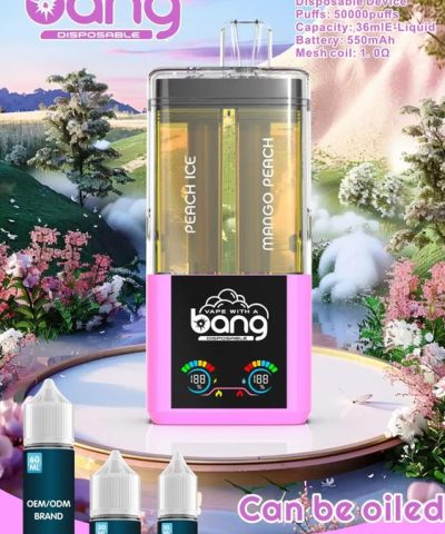 The BANG 50000 redefines disposable vaping technology with its extraordinary 50,000 puff capacity that ensures extended satisfaction. Engineered for consistent high-performance, each device delivers exceptional value through fewer replacements. Pre-filled with 36mL of premium e-liquid, it caters to all nicotine preferences with 0%, 2%, 3% and 5% strengths.
